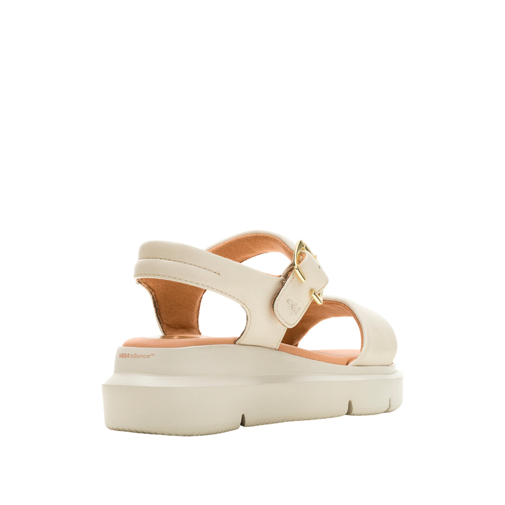 Las sandalias de cuña Uplift Strap para mujer en color taupe están hechas de cuero suave y cuentan con ajuste de hebilla para un calce perfecto. Incorporan la tecnología The Body Shoe™, con un forro antimicrobiano y absorbente de humedad que mantiene tus pies frescos y sin olores. Su plantilla Bounce™ combinada con una talonera personalizada impresa en 3D ofrece una amortiguación superior y duradera. Las ranuras flexibles permiten que el calzado se adapte con cada paso, brindando un movimiento natural y comodidad durante largas horas.