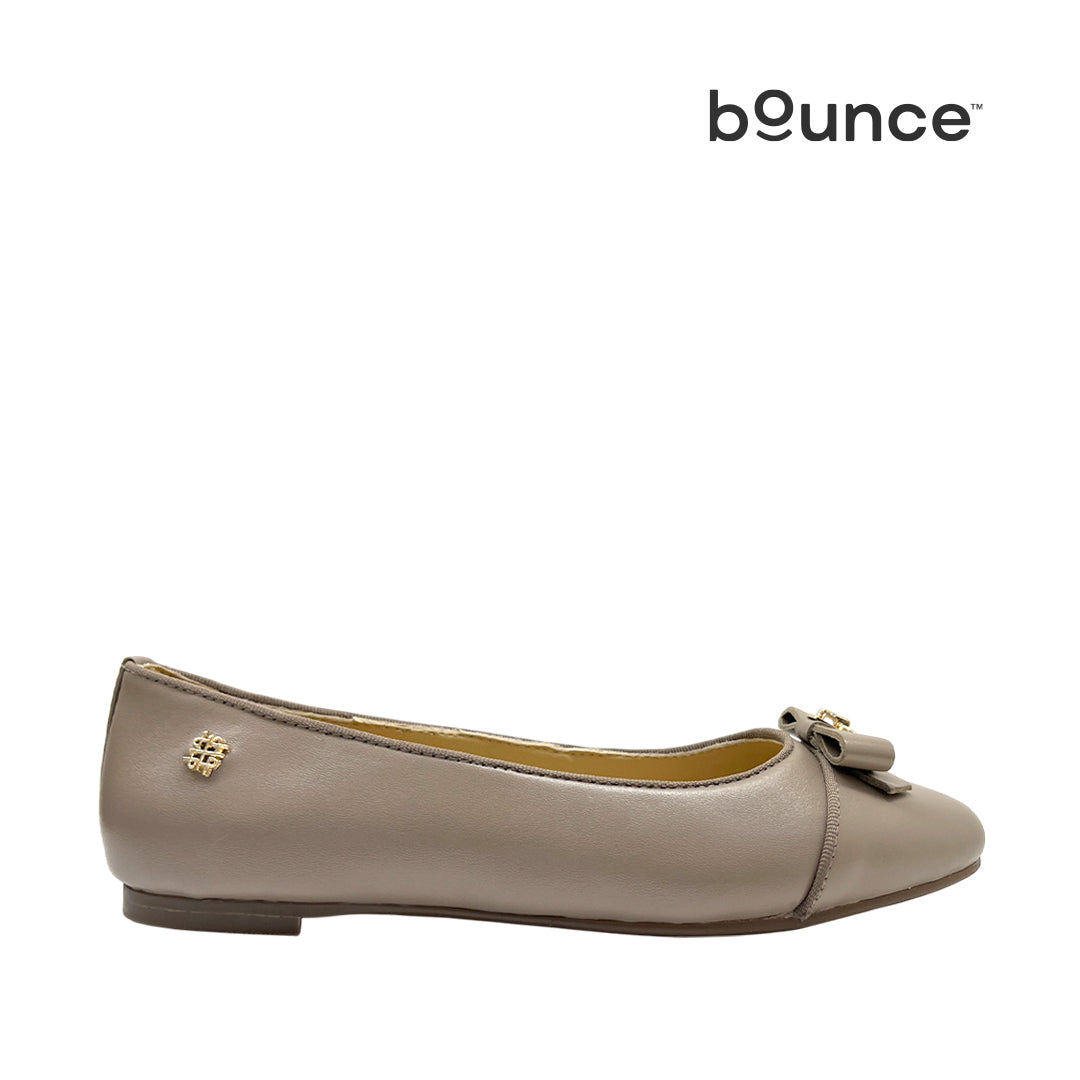 Ballerinas Zafra para mujer color taupe, en cuero con tecnología Bounce™. Plantilla extraíble de alta memoria con efecto rebote y recuperación de forma para comodidad todo el día.