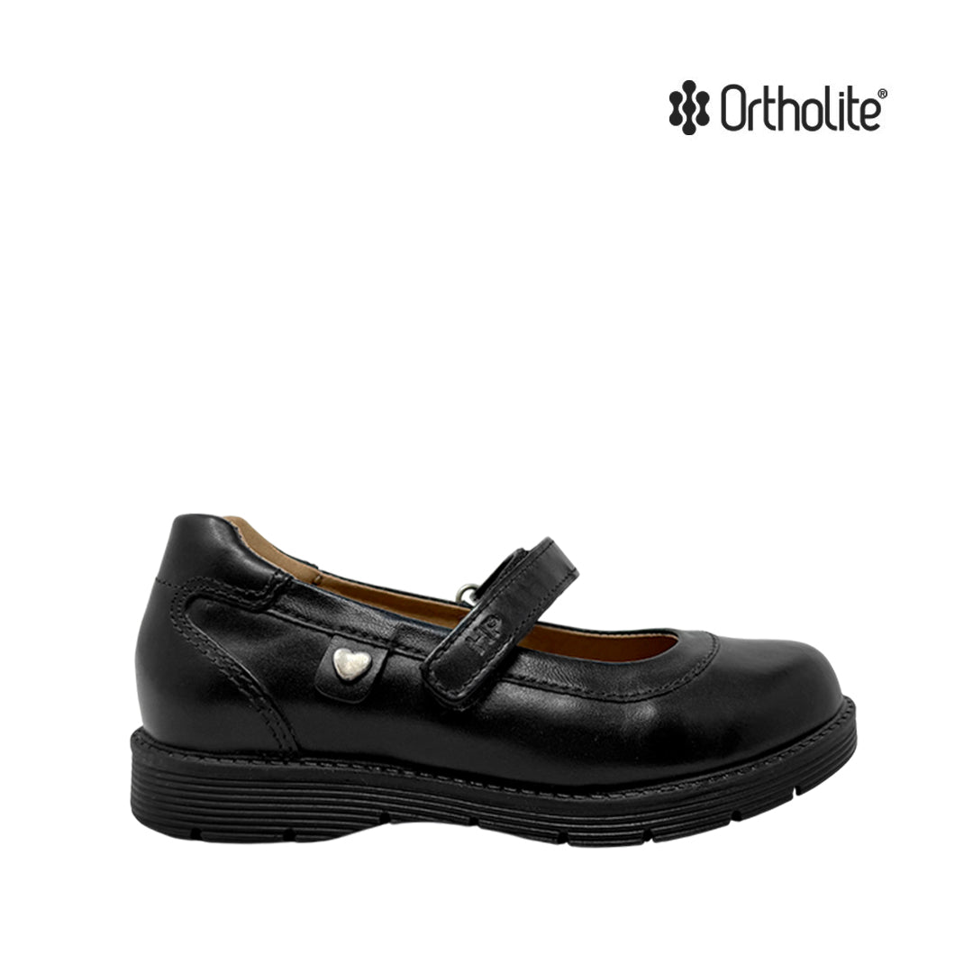 Ballerinas escolares Madelyne para niña color negro con tecnología Bounce™ y plantilla extraíble de alta memoria que retorna energía, mantiene la comodidad durante toda la jornada y supera en durabilidad a materiales de confort pasajero.