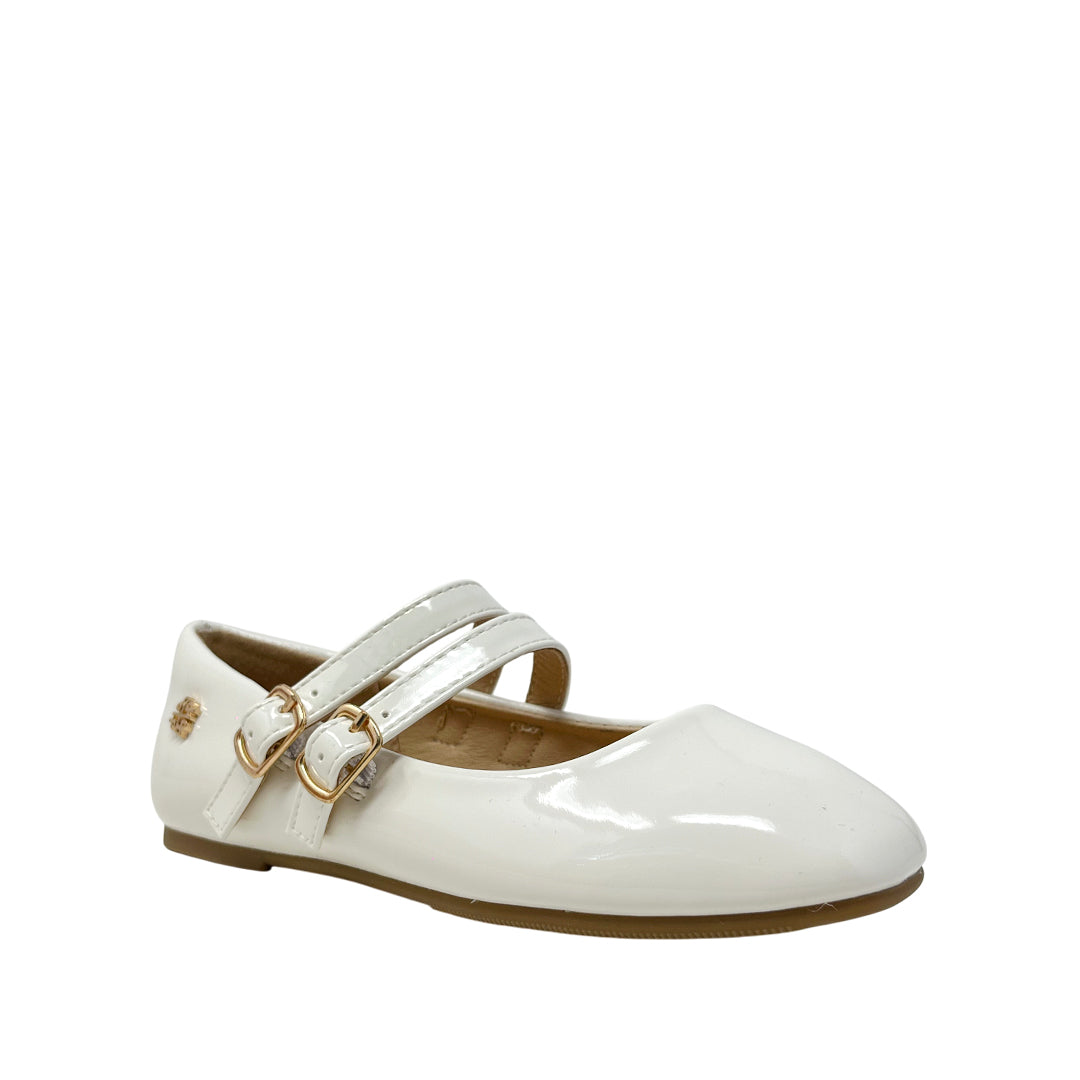Ballerinas Montse para niña color hueso elaboradas en material sintético, ideales para complementar sus looks con un estilo tierno, cómodo y versátil. Su diseño femenino las convierte en una opción perfecta para acompañarla en ocasiones especiales o en su día a día, brindándole ligereza y un toque encantador en cada paso.