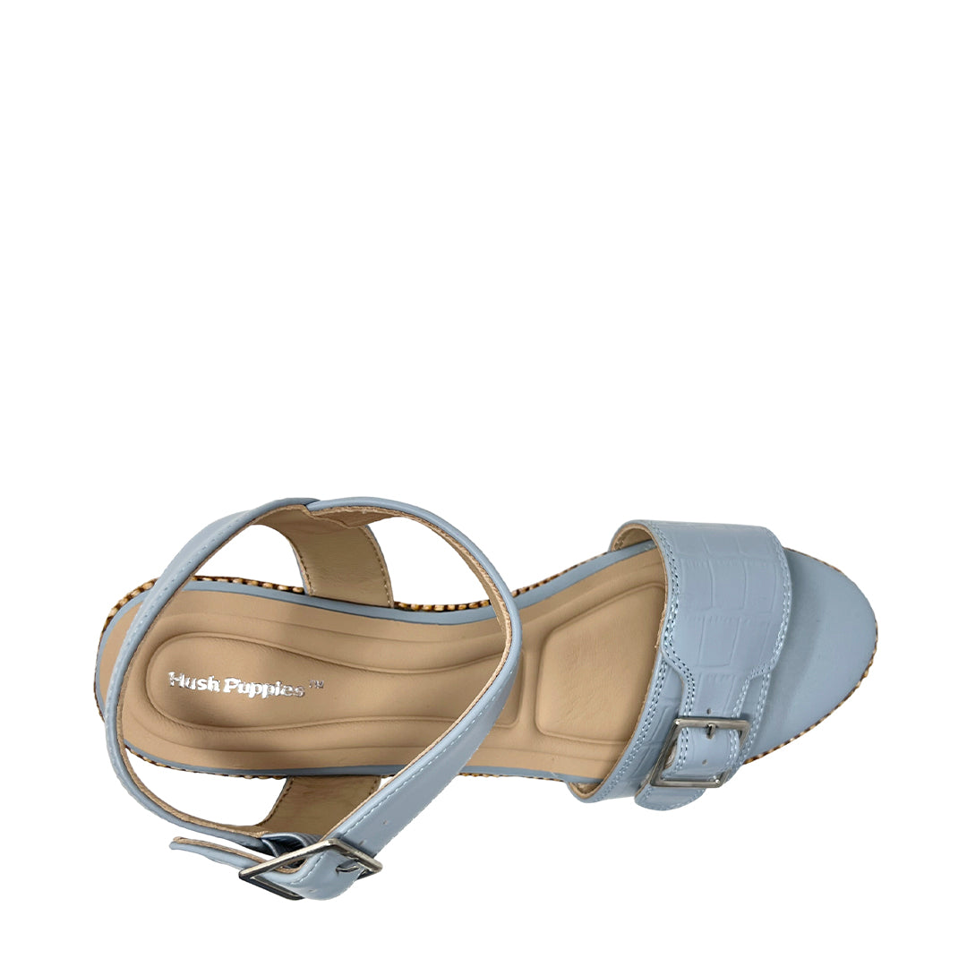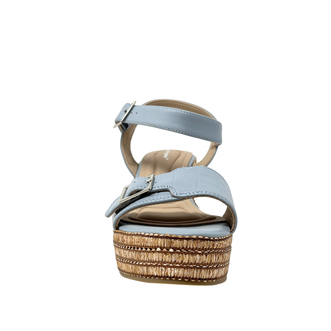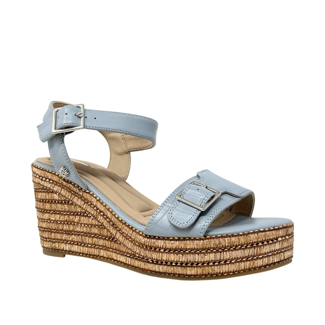 Sandalias de cuña Angie para mujer color celeste, en cuero. Cuña con estabilidad y confort para looks frescos.